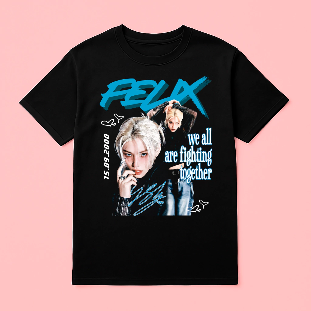 ¡Destaca con la Playera "Felix Stray Kids", hecha 100% de algodón suave y cómodo! 🌟