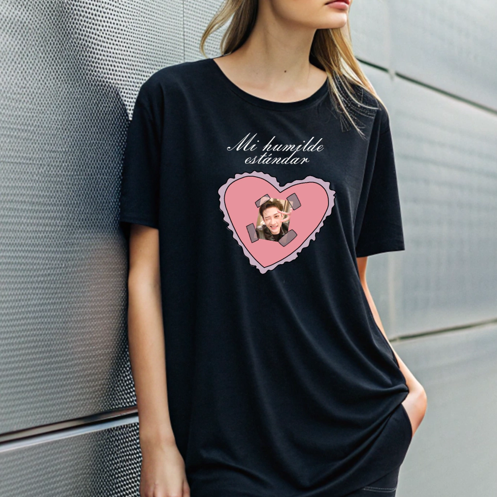 ¡Presentamos la playera "Mi Humilde estándar Bang Chan"! 🎉 La prenda perfecta para demostrar tu amor a tu ídolo K-pop favorito, ¡y además es súper cómoda y de excelente calidad!