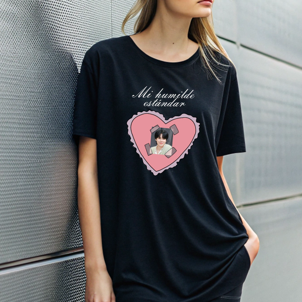¡Presentamos la playera "Mi Humilde estándar Jimin"! 🎉 La prenda perfecta para demostrar tu amor a tu ídolo K-pop favorito, ¡y además es súper cómoda y de excelente calidad!